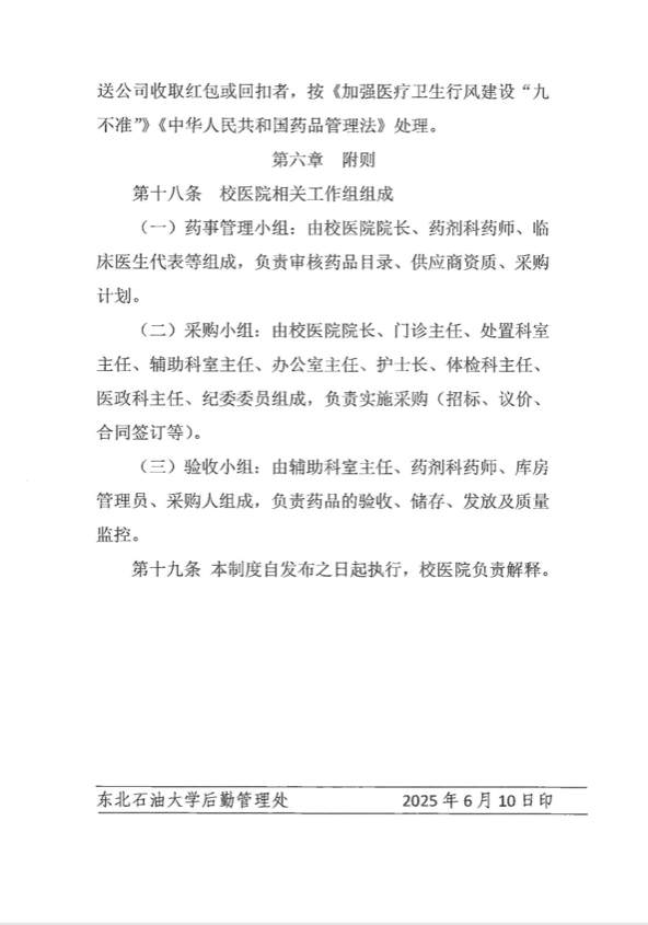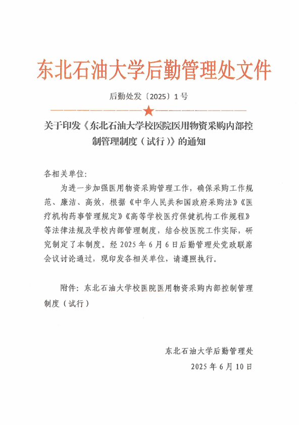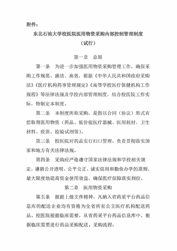 关于印发《东北石油大学校医院医用物资采购内部控制管理制度(试行)》的通知