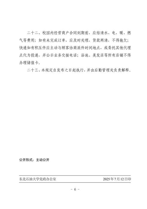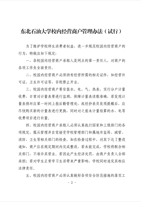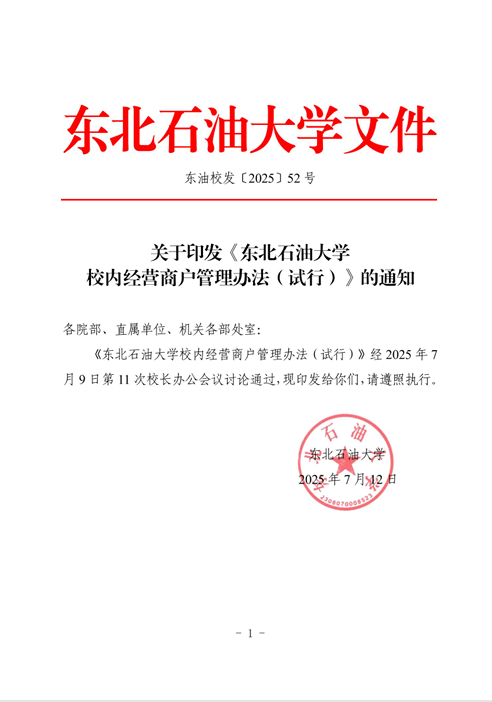 关于印发《东北石油大学校内经营商户管理办法(试行)》的通知
